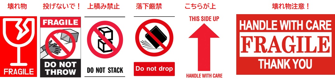 梱包は割れ物や梱包した段ボールに以下のラベルをはりましょう。