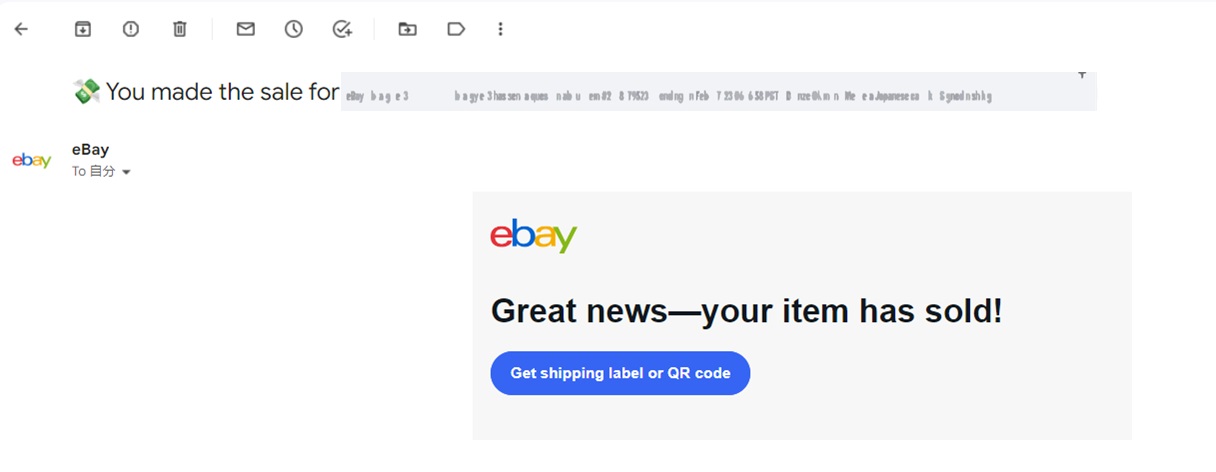 出品した商品が売れたら、eBayへ登録しているアドレスにメールで通知されます。